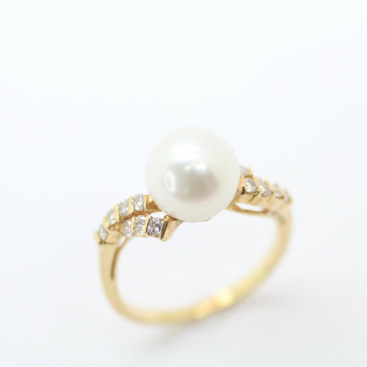 Pearl and Diamonds Engagement Ring in 14k Yellow Gold 7us