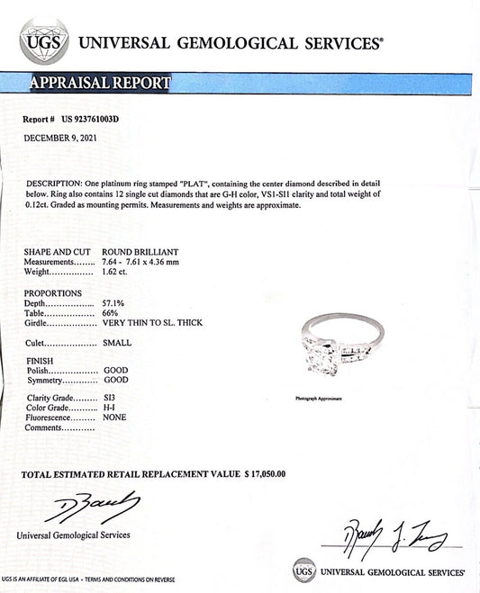 1.62 Carat Round Diamond Split Shank Engagement Ring in Platinum 5.25us