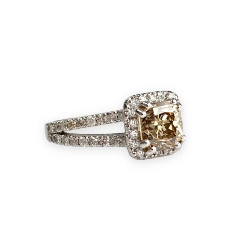 14k White Gold Fancy Yellowish Brown Radiant Diamond Engagement Coctail Ring