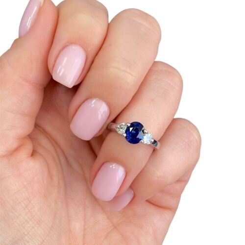 Platinum 1.27ct Blue Sapphire & 0.38ctw Diamond Coctail Engagment 3 Stone Ring