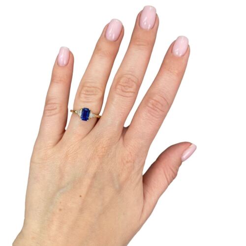 14k Yellow Gold 1.60ct Blue Sapphire & 0.40ctw Diamond Coctail Engagment Ring