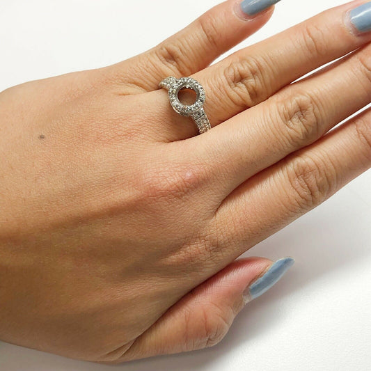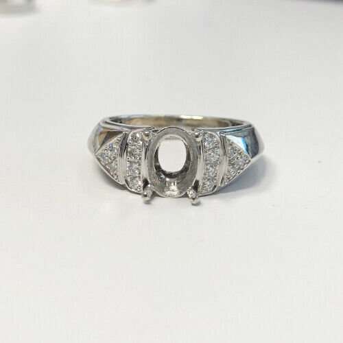 18k White Gold Unique Oval Ring Mounting W/ Diamonds 0.40ctw 7.75us