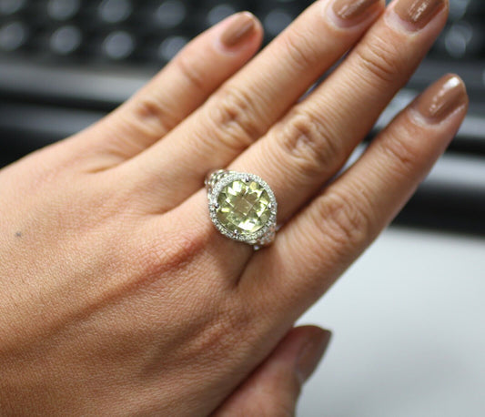 Vintage 18k White Gold Round Citrine Ring 6.75us