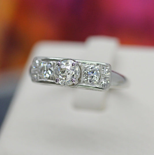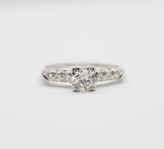 14k White Gold Antique Vintage Diamond Engagement Ring 1.17ctw