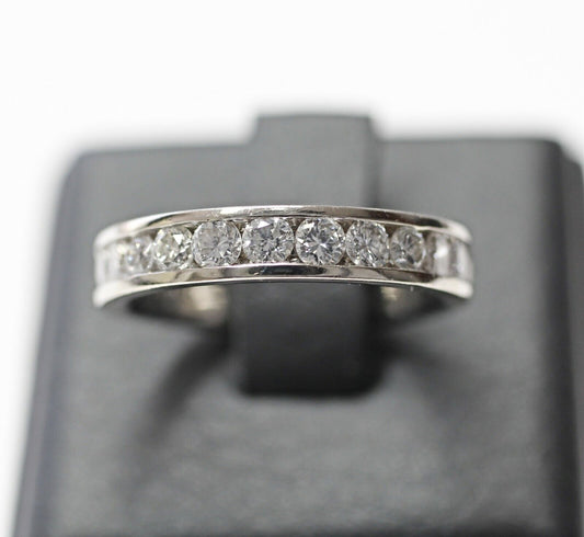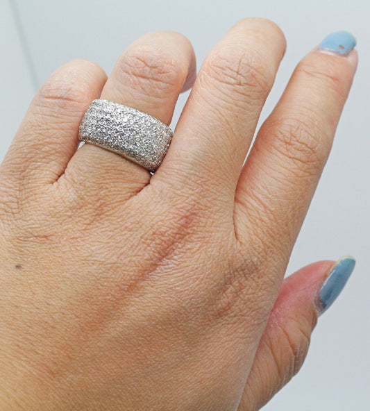 Band Pave Diamond Ring in 18k White Gold 1.50ctw 5us