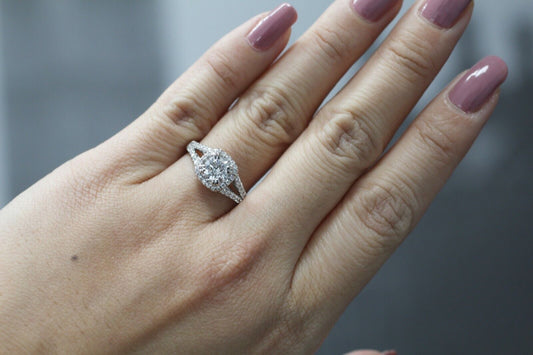 Forevermark Cushion-Shaped Halo Engagement Ring Set in Round Diamond 1.05ctw