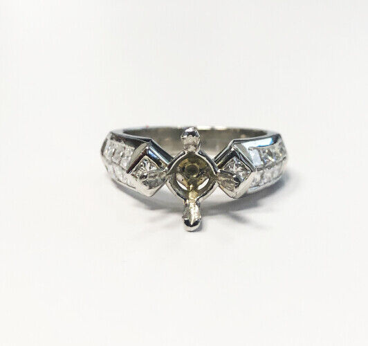 Platinum Antique Style Engagement Ring Mounting W/ Princess Cut Diam 0.65ctw 4us