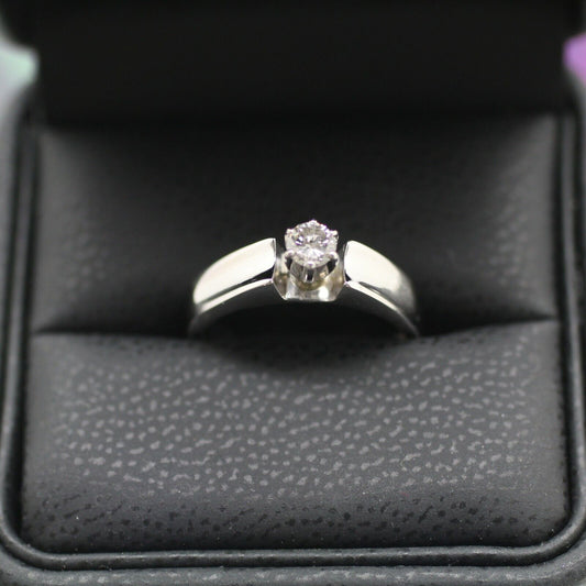 14k White Gold Solitaire Engagement 6 Prong Diamond Ring Size 6 3.81mm/0.2ct